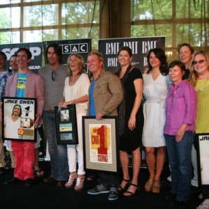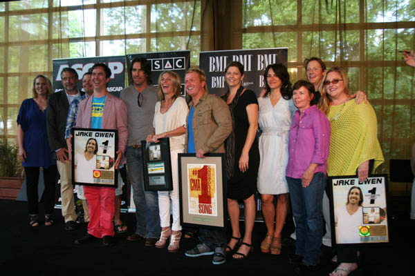 Jake Owen and his team celebrate the success of “Alone With You” in Nashville.