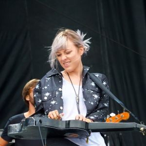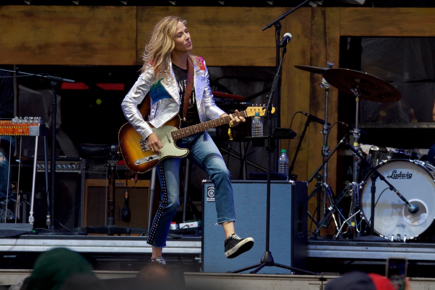 Megan Lovell of Larkin Poe performs on the Oak Stage Saturday
