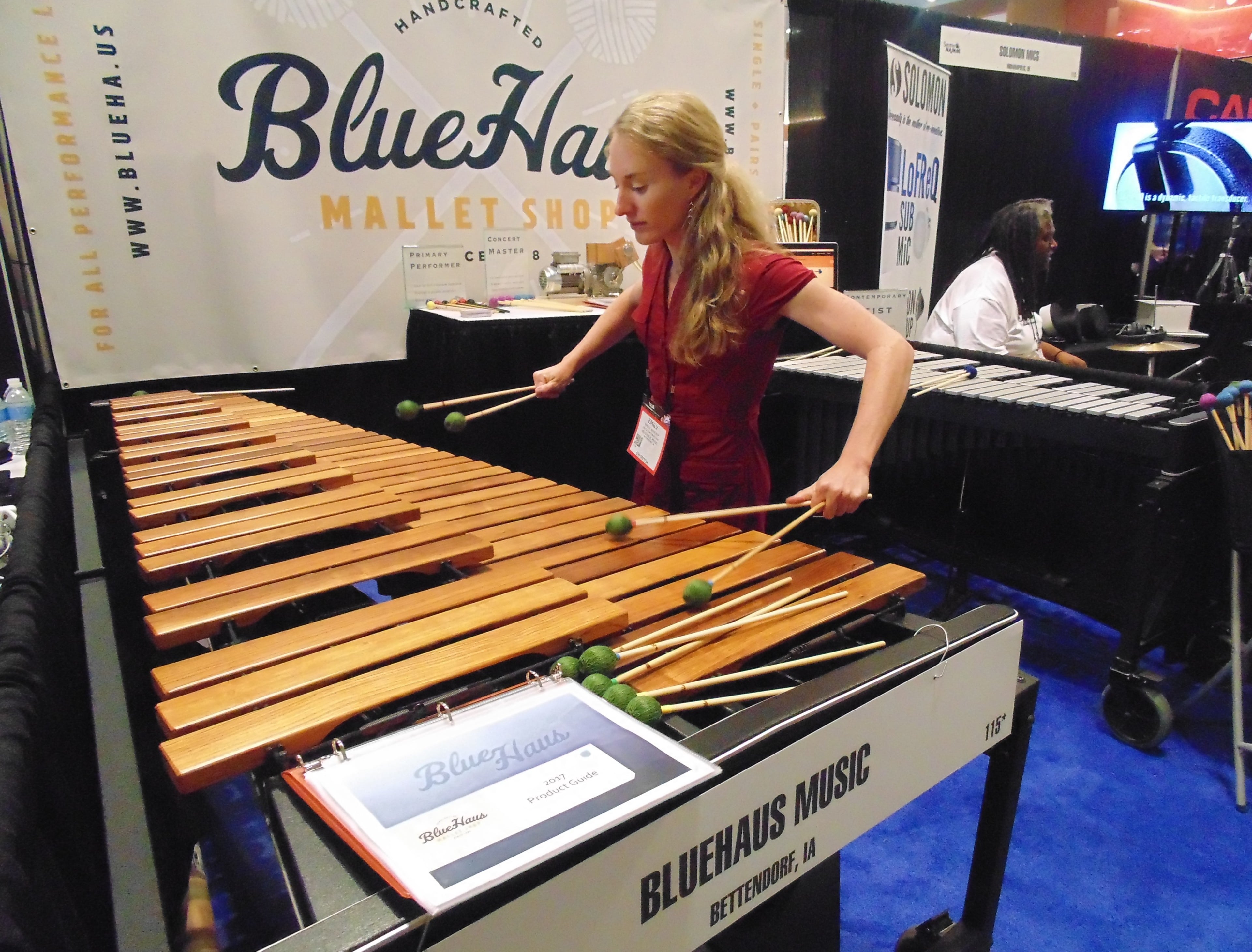 Emily Winchip, of Bluehaus Mallets in Bettendorf, Iowa, shows her chops with four mallets on a marimba, while explaining how the marimba, xylophone and vibraphone are seriously coming back into vogue.