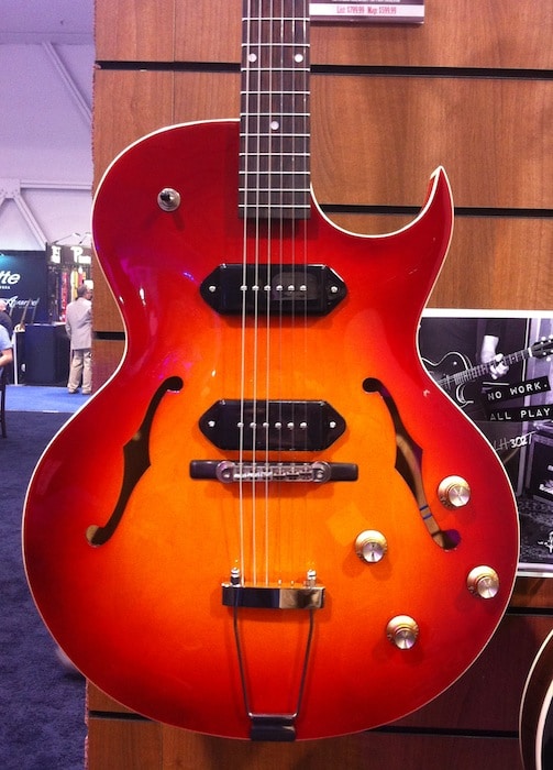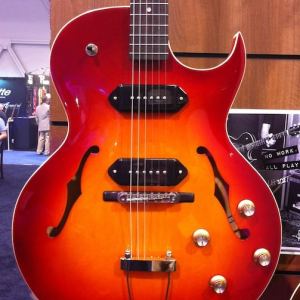 Hot on the hells of last year’s non-cutaway thin line, The Loar introduced the LH-302T thin line hollow body with a single cutaway and a pair of P-90 pickups. Also on display was the LH-304T, a humbucking-equipped version of the same guitar.