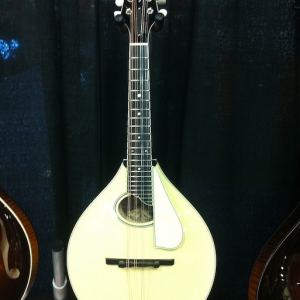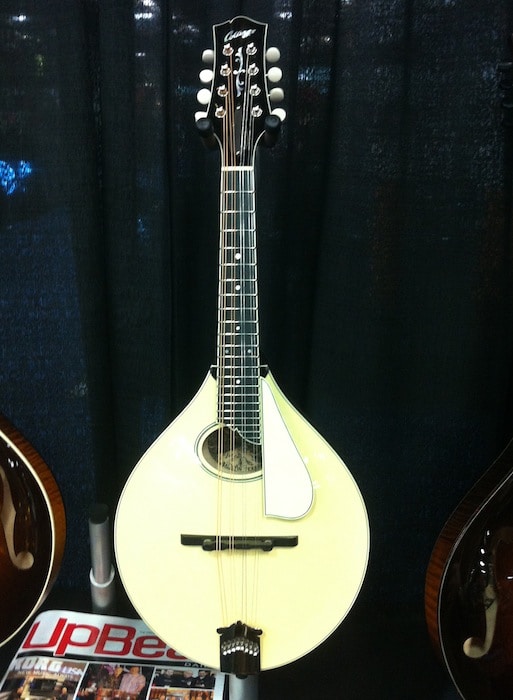 Collings showed a pair of instruments in a striking white finish: an I-35 semi-hollow guitar and this A-style mandolin which has a contrasting darker finish on the back and sides.