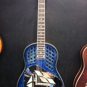 This wood bodied Tricone from National Guitars was pretty hard to miss with its brilliant blueburst finish.