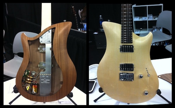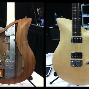 Proving that innovation is still alive in guitar construction, the Switzerland-based Relish guitars offers their Jane series of guitars. The display instrument’s cutout back shows the inner workings of the organic original body shape.