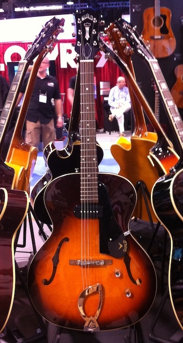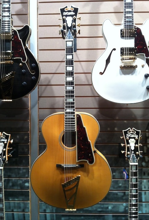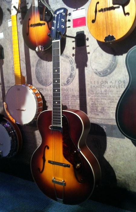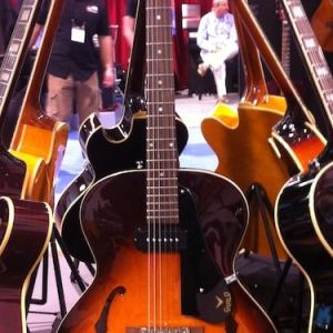 Gretsch added a new archtop to the Roots Collection, a New Yorker with a floating “monkey on a stick” pickup based off of the old DeArmond jazz guitar pickup.