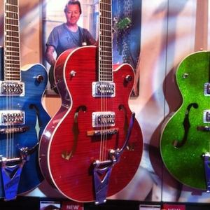 Brian Setzer’s name is arguably as ingrained in Gretsch culture as Chet Atkins. Among the new releases for 2015 are new colors for the Brian Setzer Hot Rod series. Here is a trio of some of the new finishes: two-tone blue and red and a radiator-fluid-colored sparkle green.