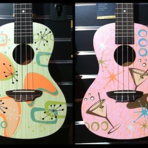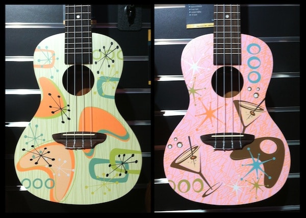Luna Guitars showed a series of ukeleles that featured some googie inspired graphics.