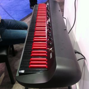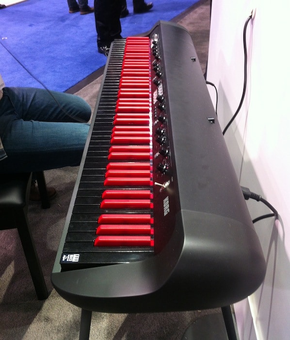 Korg displayed the SV-1BKRV performance keyboard now with black and red keys. The SV-1 is loaded with acoustic piano sounds and a bevy of classic vintage sounds such as the Wurlitzer electric piano and Hammond organs. The samples of these instruments were recorded keeping their quirky character intact, including the clicks and mechanical noise.
