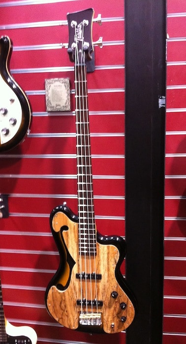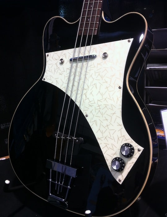Kay had a couple of reissue basses on the floor, including this Jazz Special. Perhaps somewhat counter-intuitively, the thin blade pickup (set in a very cool boogie print pick guard) contributes largely to the bass’s subsonic sound that made the originals collector’s items.