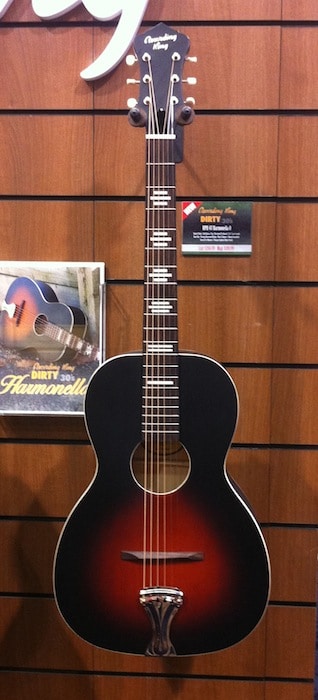 Recording King showed off a few new additions to their Dirty 30 line of guitars, including this RPH-07 Harmonella 0. Clearly based off the old mail-order catalog and department store guitars of yesteryear, this guitar upgrade of the instrument includes a solid spruce top and an x braced top to improve the tone over the originals.