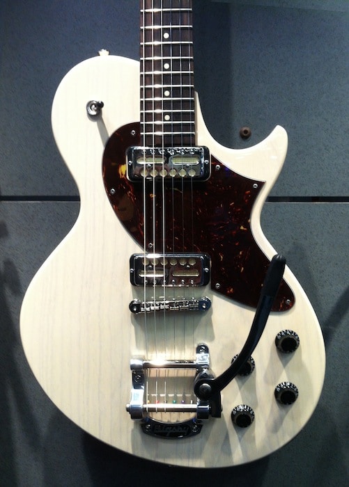 Saul Koll is a member of the Premier Builders Guild, and the guitars Koll displayed at the show live up to the name. This triple pickup version of his Glide model features three lipstick tube pickups, but other pickups and semi-hollow construction options are also available.