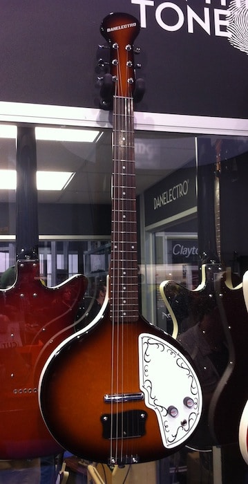 Back in the day, Danelectro was more than a mere mass manufacturer of instruments – they were also innovators in the industry. One of the new instruments the current Danelectro reissued this year is the Electric Sitar. This gourd-shaped instrument is tuned and played like a guitar but sounds like India’s sitar, thanks largely to the design of the bridge.