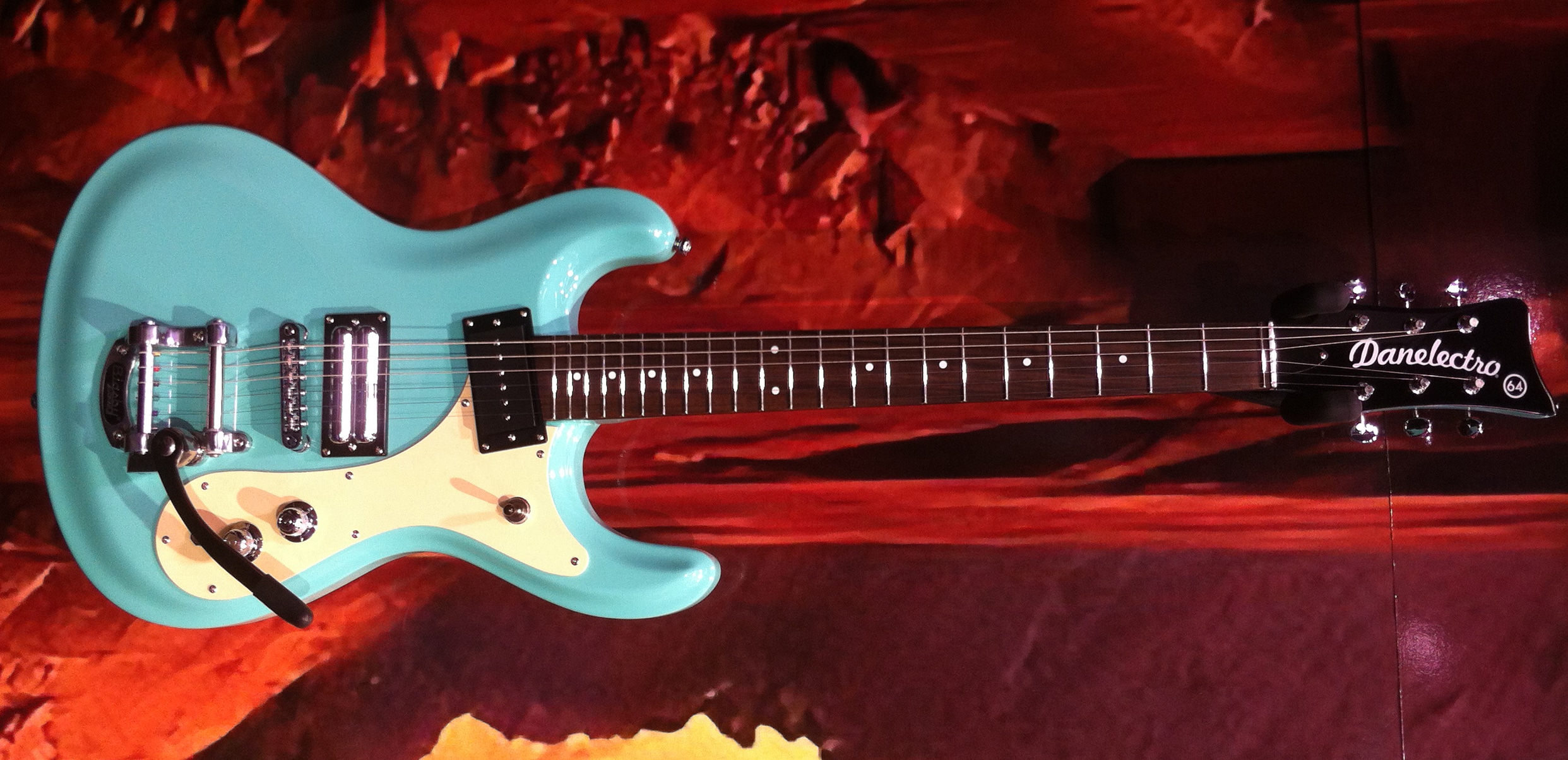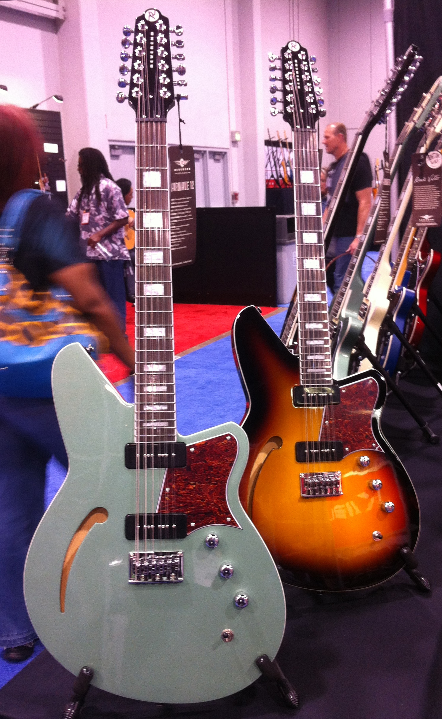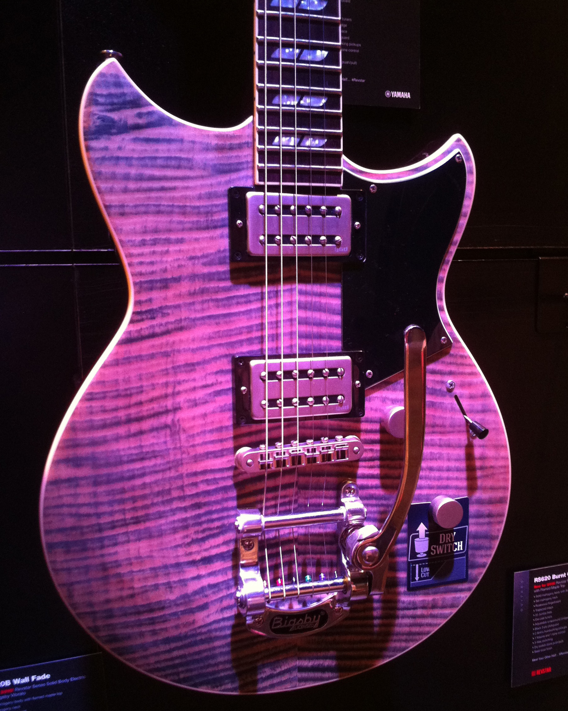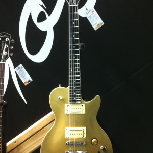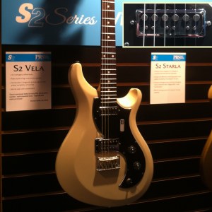 PRS displayed the Vela, which is a retro inspired guitar with D’Armond inspired neck pickup (see inset photo in the upper right corner) and a bridge pickup voiced similar to a Gretsch Filtertron.