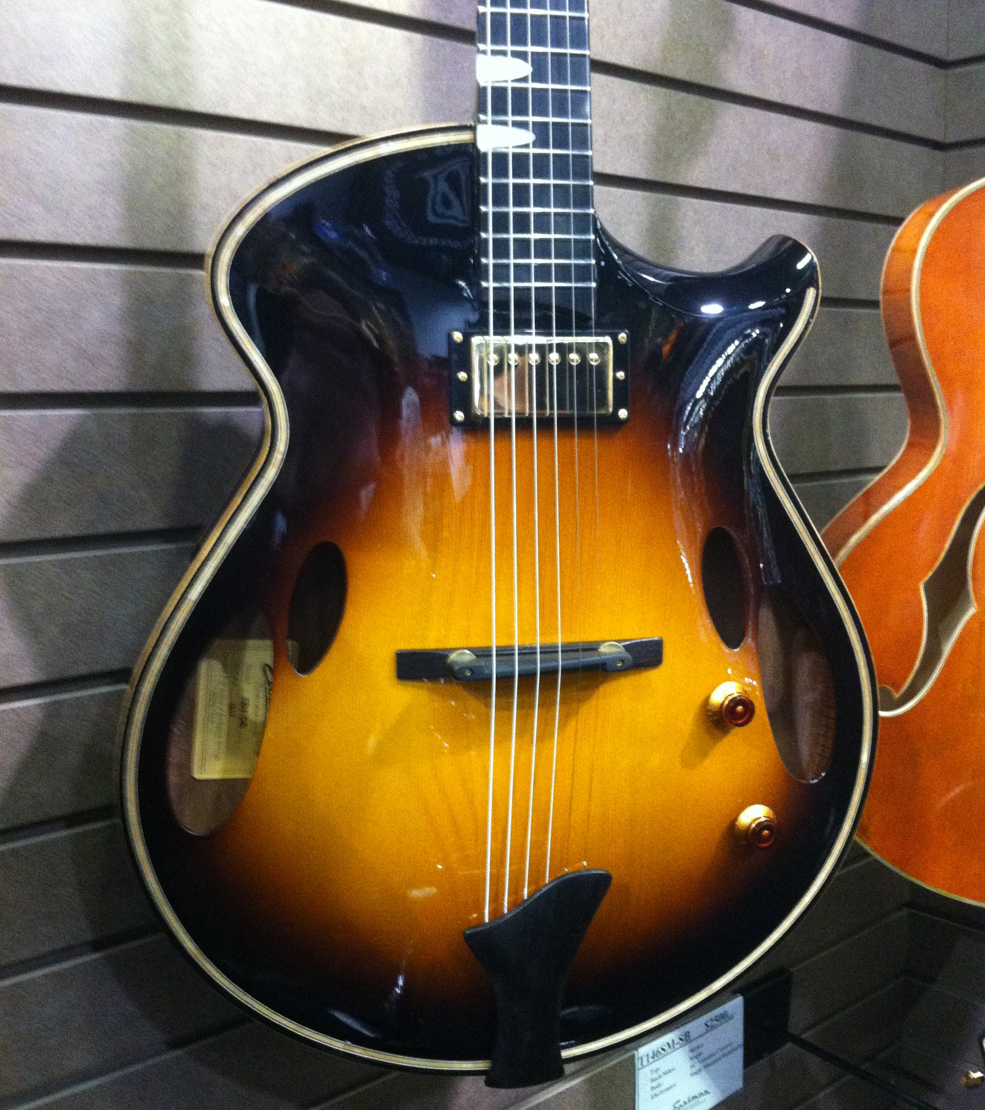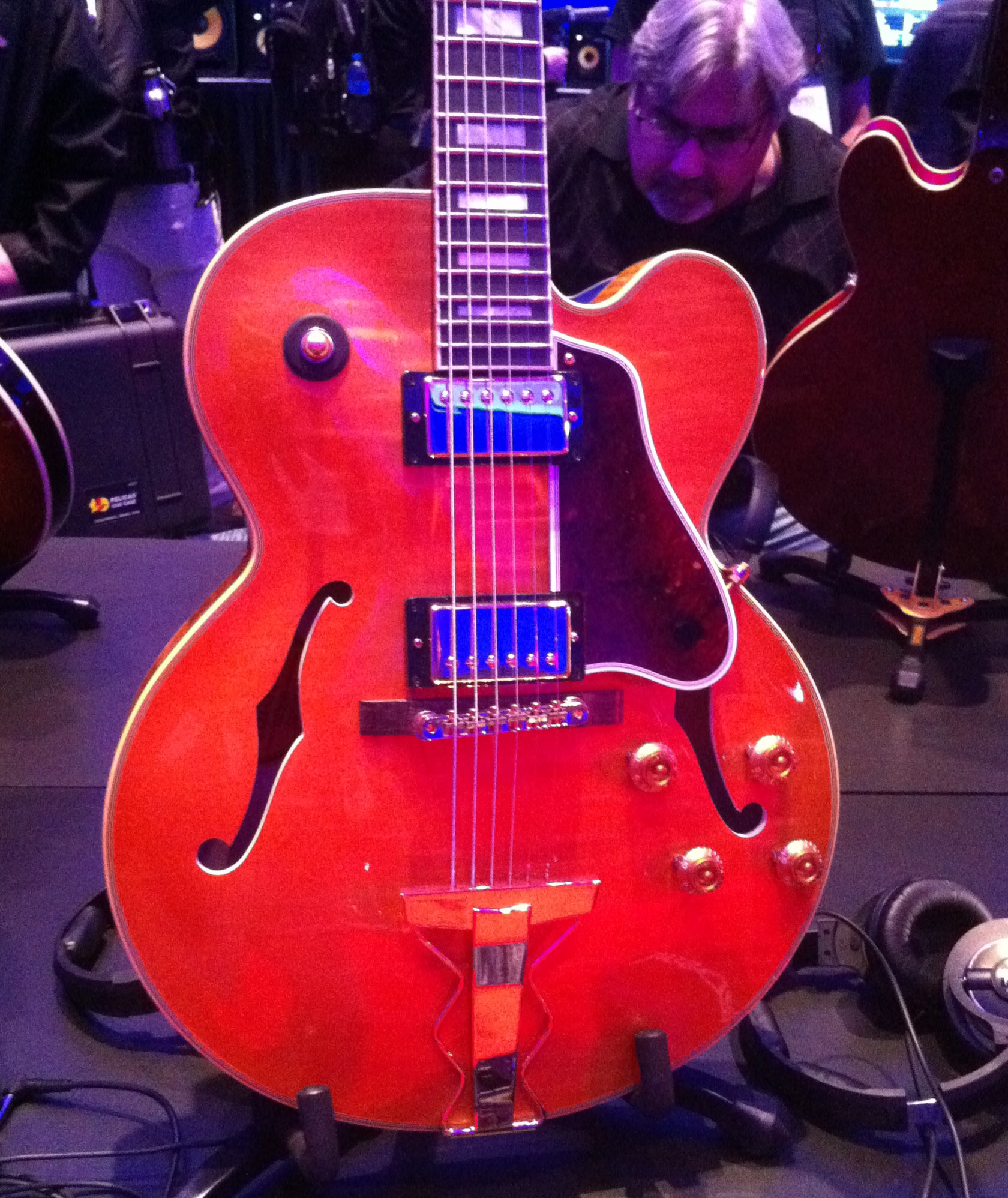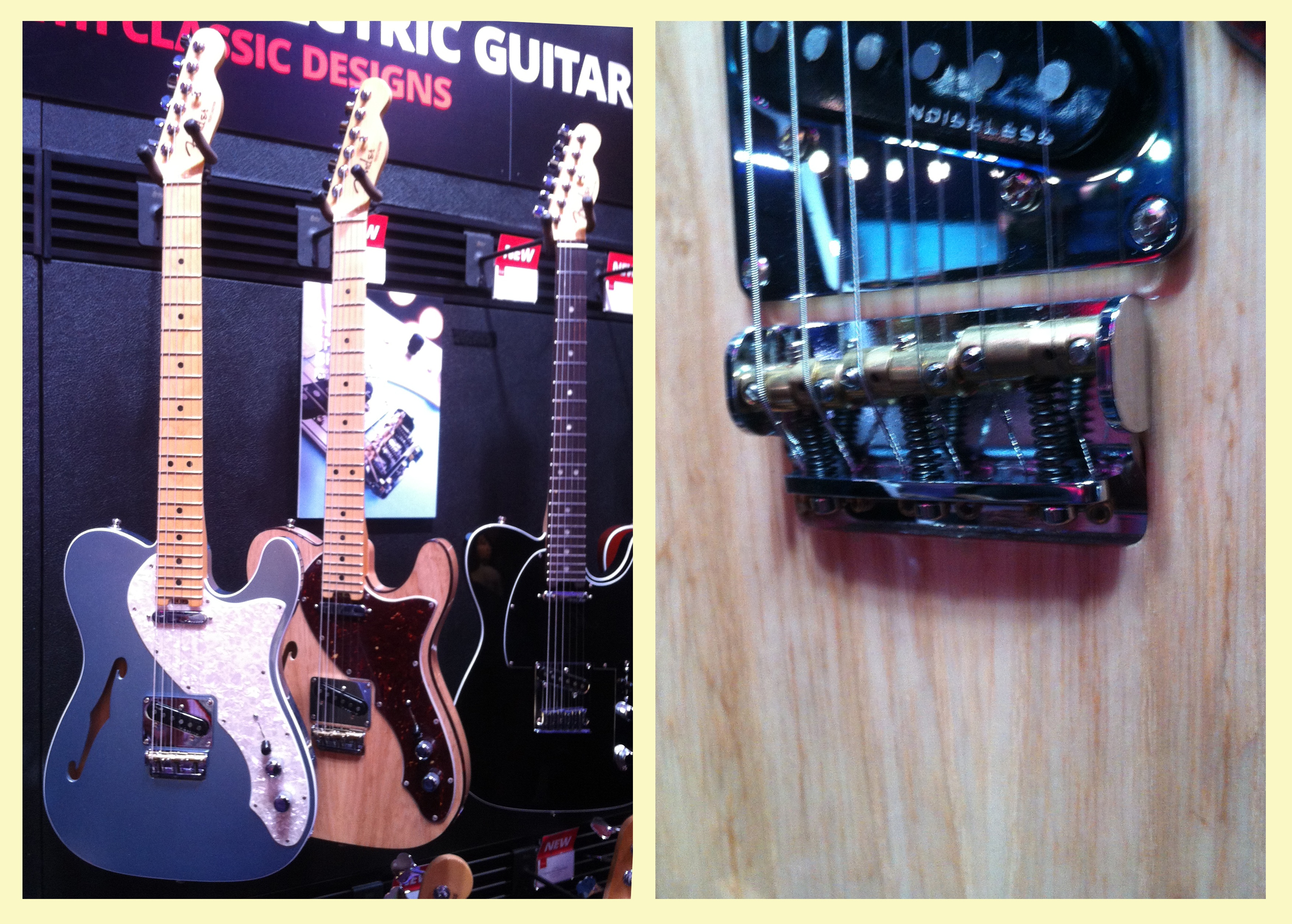 PRS displayed the Vela, which is a retro inspired guitar with D’Armond inspired neck pickup (see inset photo in the upper right corner) and a bridge pickup voiced similar to a Gretsch Filtertron.