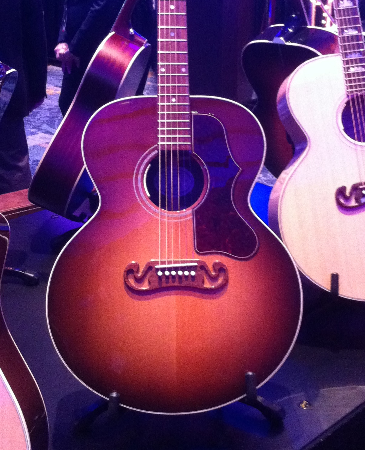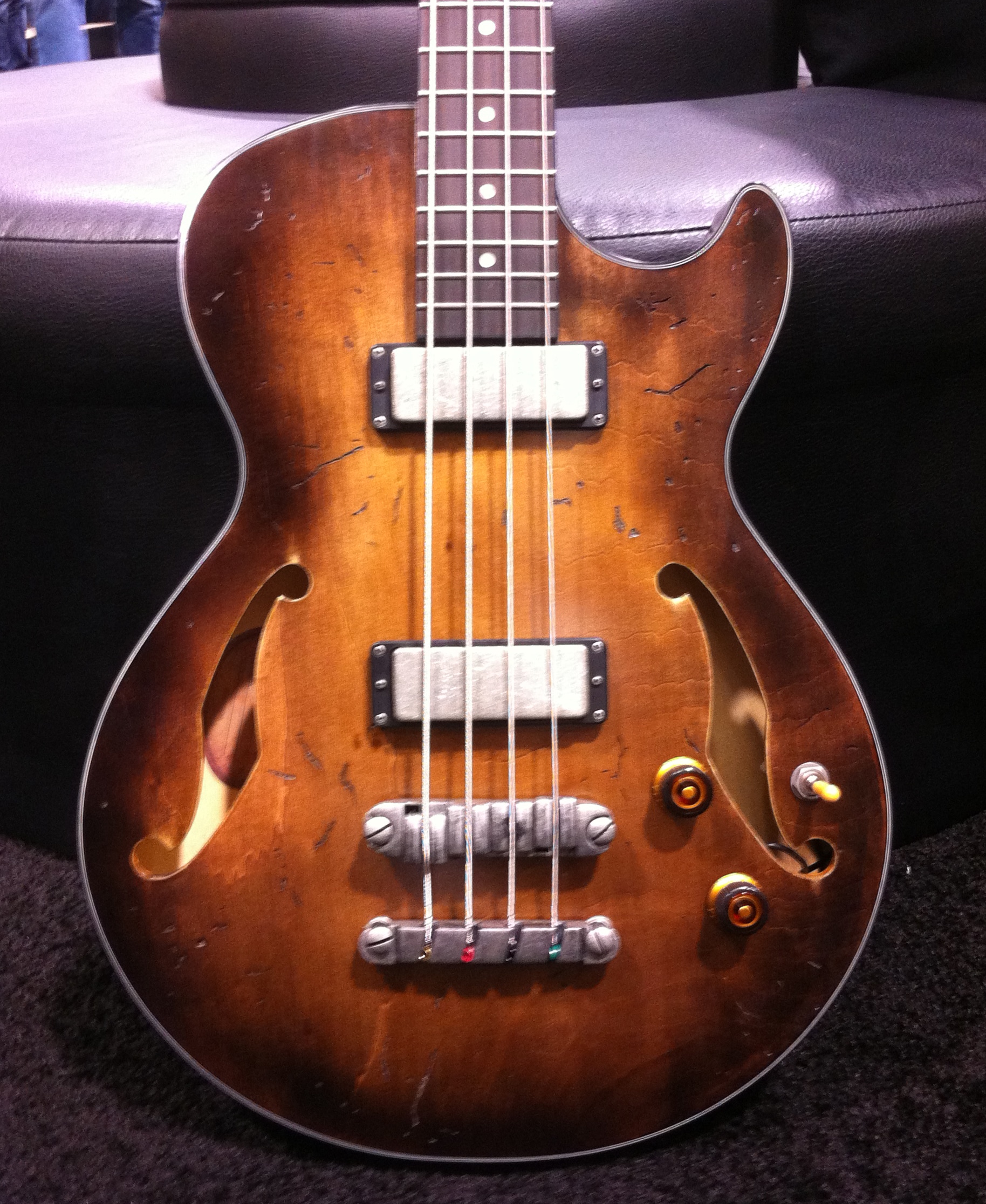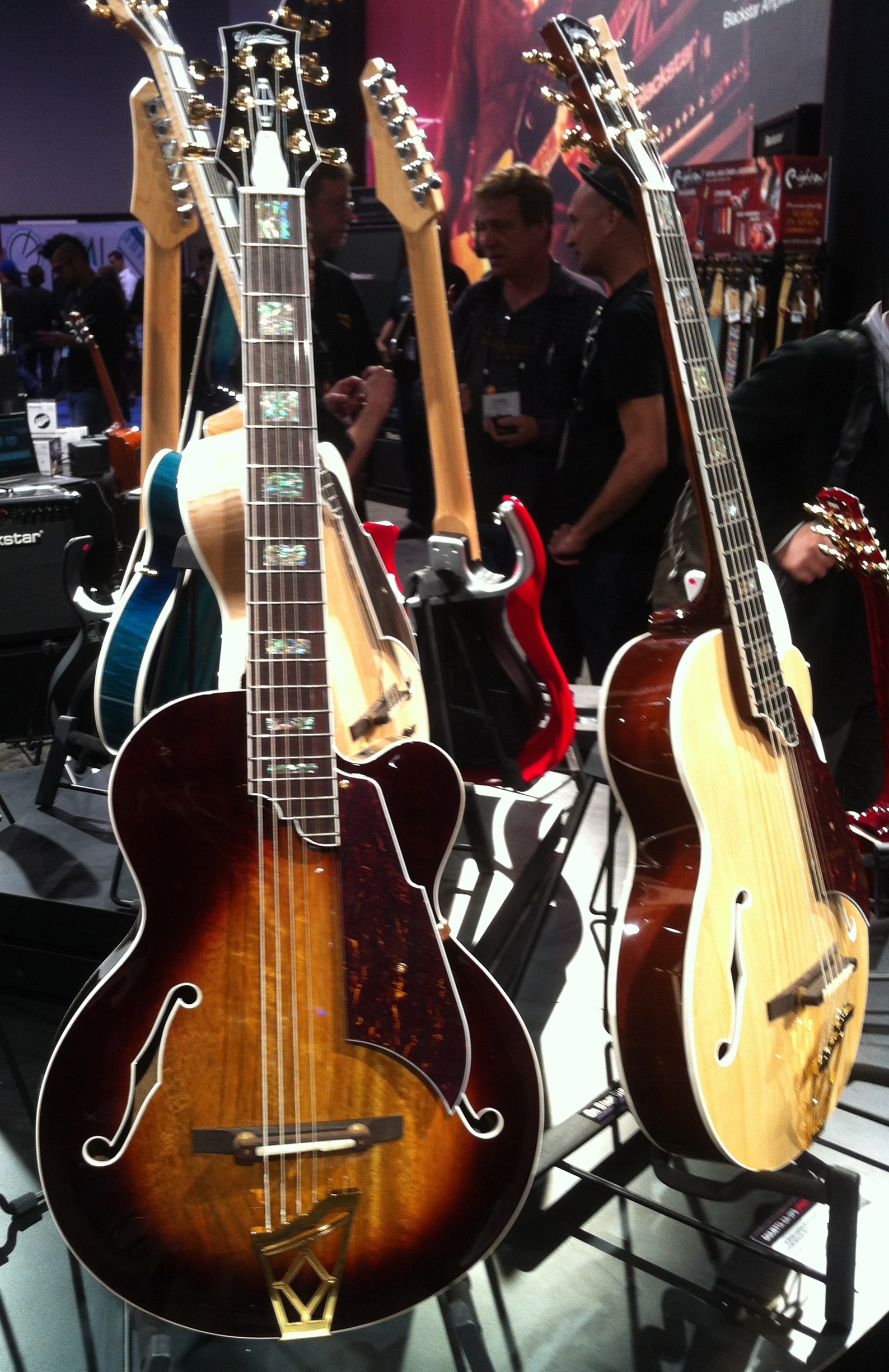 D’Angelico Guitars pays tribute to luthier John D’Angelico’s work with a recreation of the master’s most interesting (if not bizarre) instruments. Instead of the original’s traditional sunburst finish, this NAMM display guitar features the blue sunburst of one of D’Angelico’s apprentice James D’Aquisto’s most famous guitars.