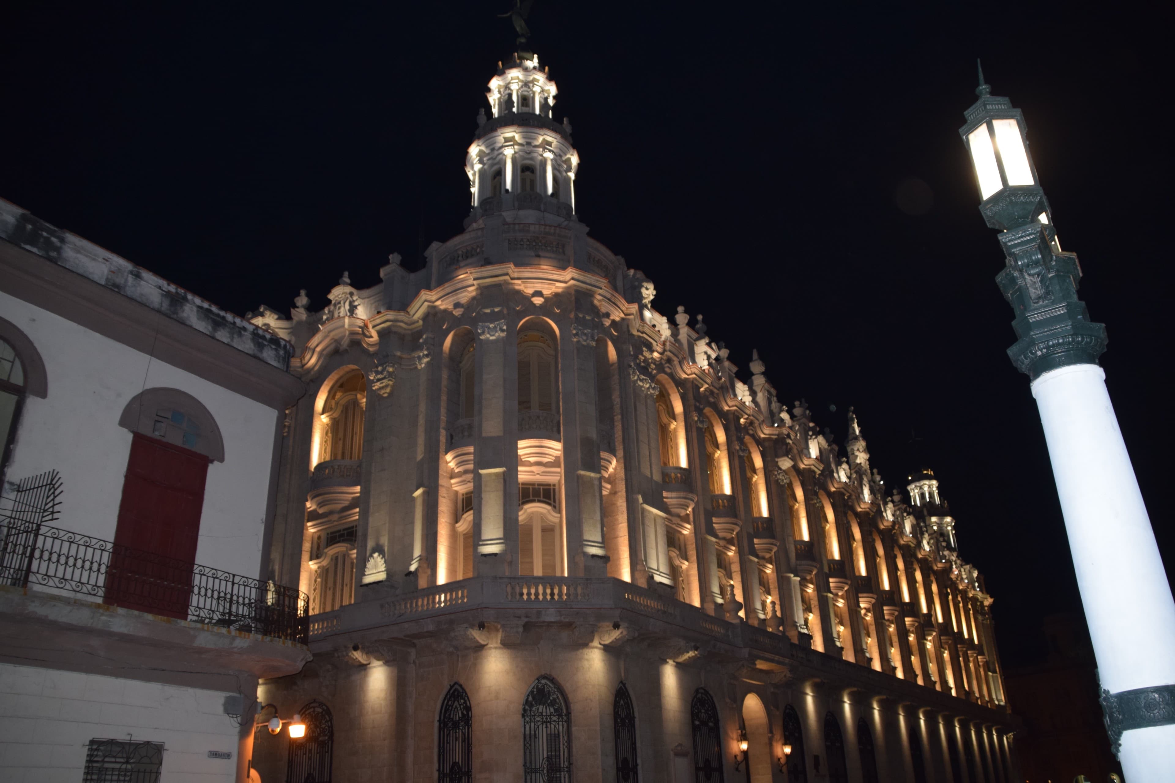 The Gran Teatro de La Habana at night. In March 2016, President Obama delivered an historic address here that was broadcast throughout the island. It marked the first time a sitting U.S. president had visited Cuba since Calvin Coolidge came here in 1928.