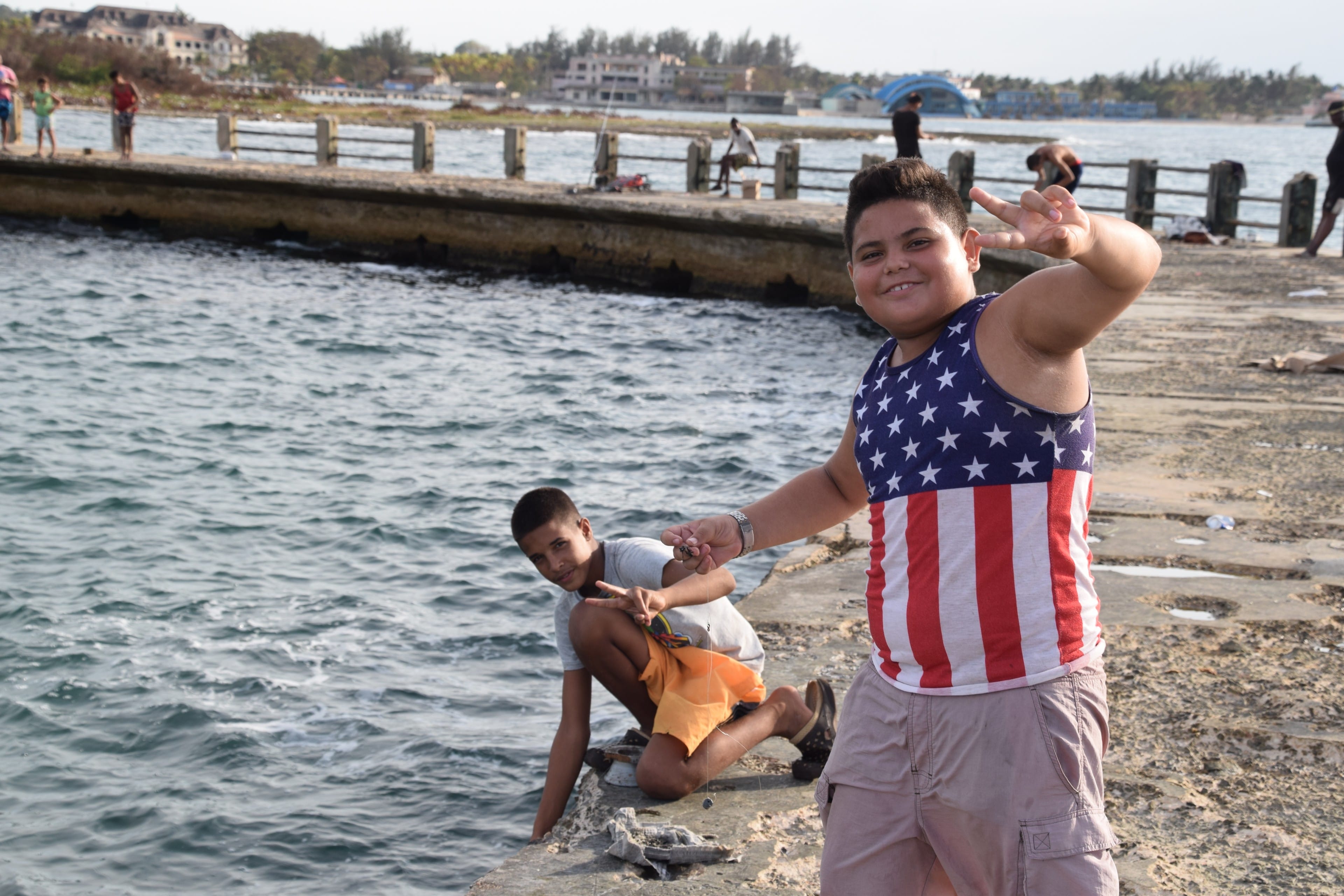 Two young fishermen take time for a photo.