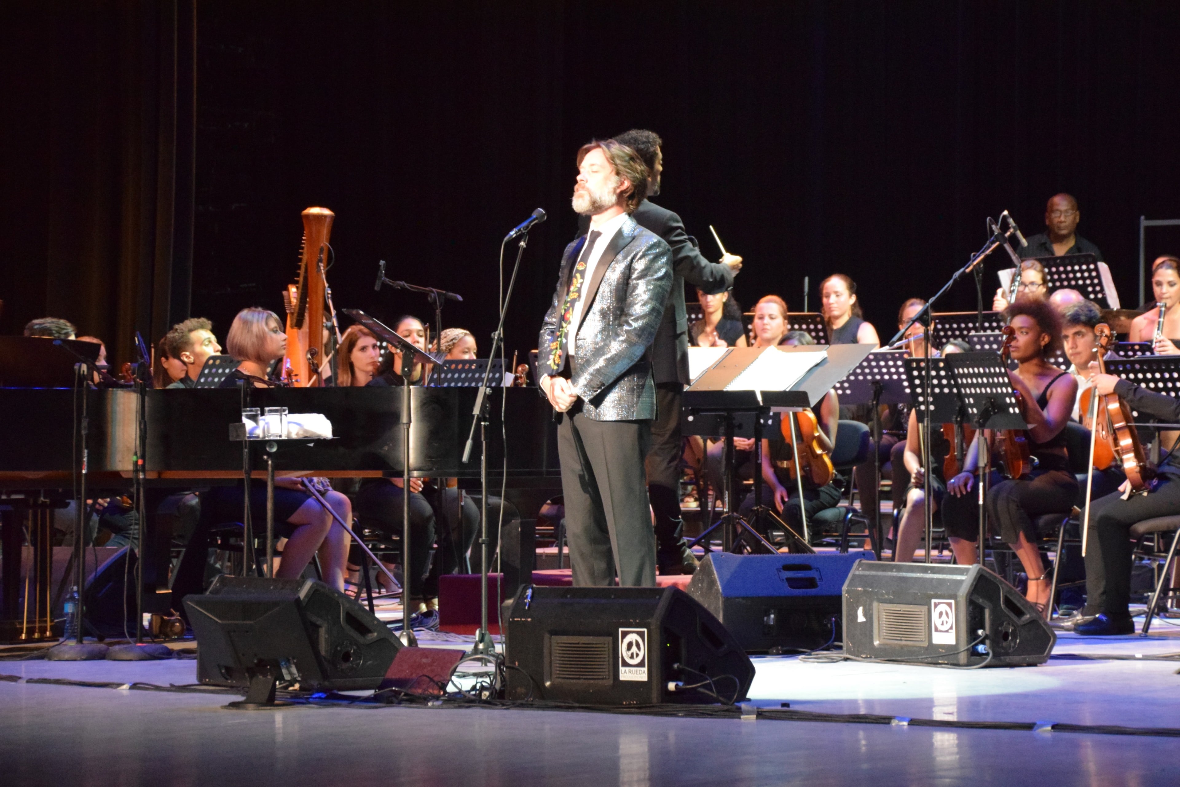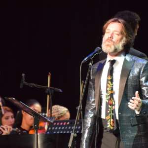 Wainwight takes a bow with conductor Giovanni Duarte (far left) and Carlos Varela.